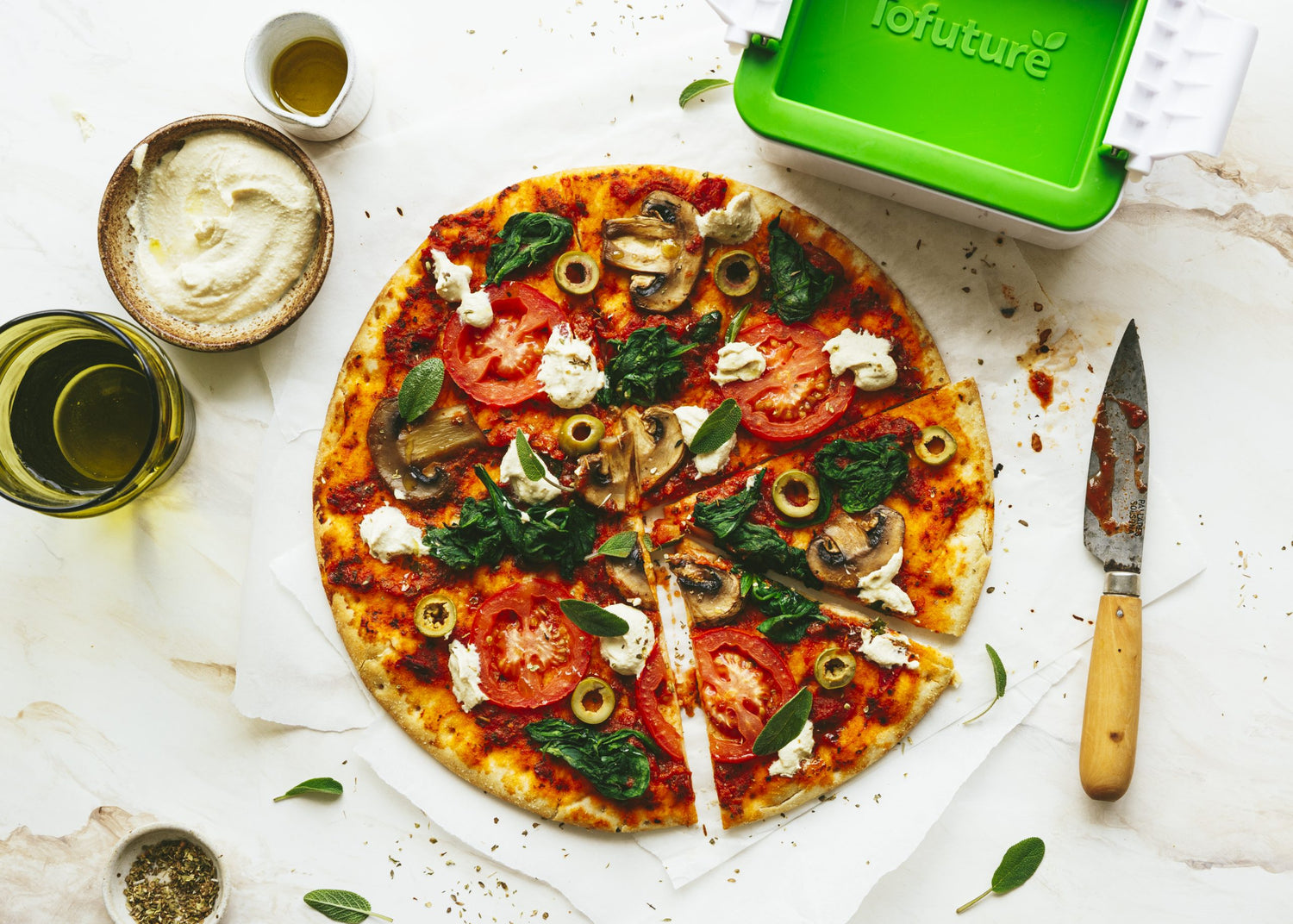 Who doesn't love pizza? And now pizza doesn't have to be overloaded with dairy and such a calorific treat. Crumble our cheesy-flavoured tofu over your favourite pizza sauce, add toppings and you'll never look back!