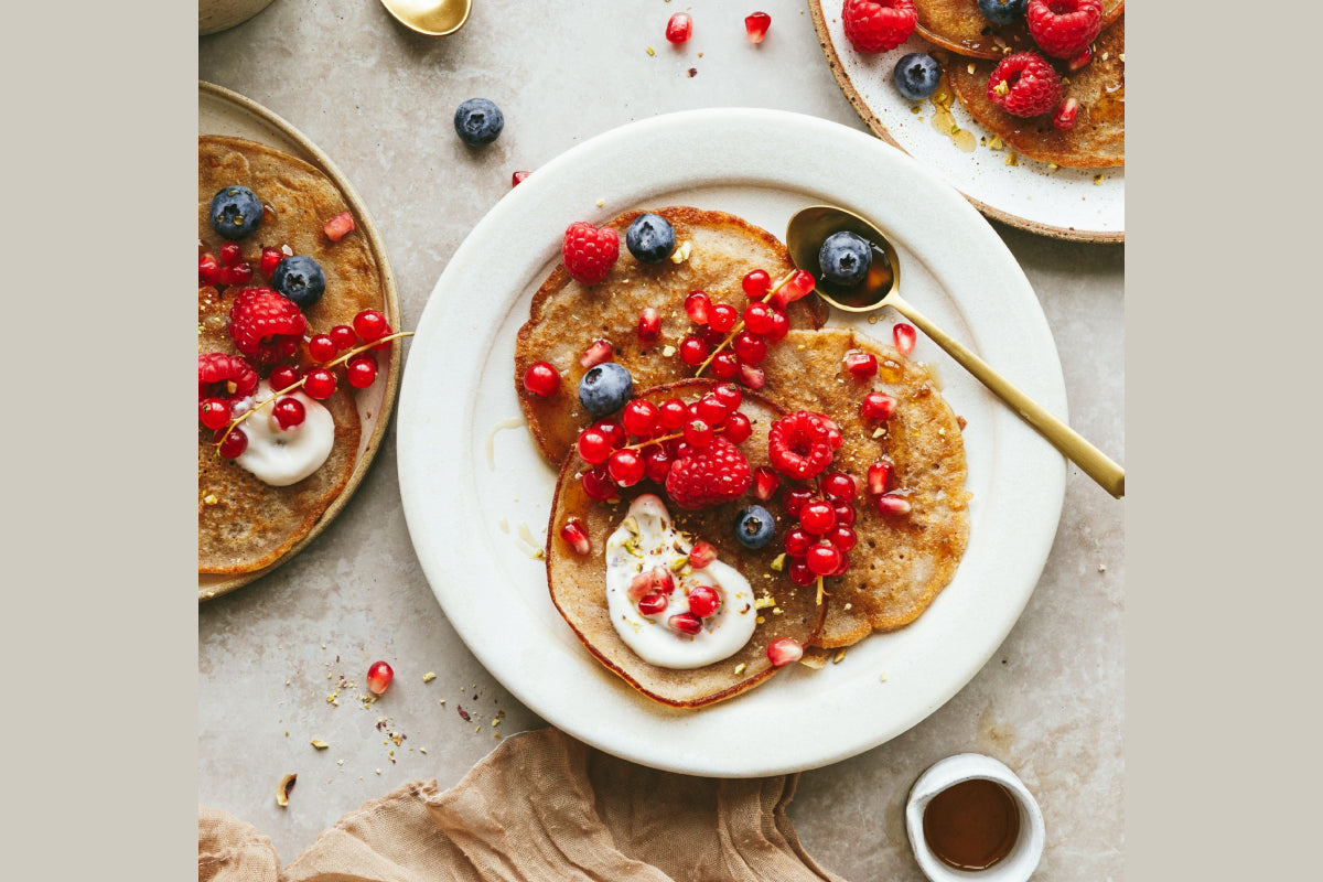 Pancakes for breakfast is a luxury but not necessarily an unhealthy one. Using silken tofu to make this pancake batter gives this opulent treat and protein boost, not to mention a delicious, creamy texture.