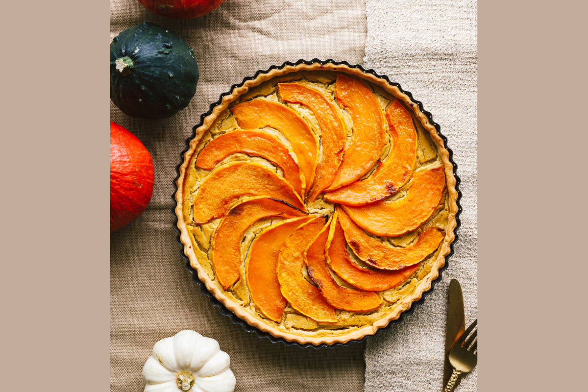 Happy Thanksgiving USA! We've taken some classic ingredients here to create a super-simple quiche. It works as a main with veggies or is also delicious served cold as part of a buffet. However your Thanksgiving rolls. You can even used ready-chopped pumpkin or butternut squash cubes if you're in a rush and throw the whole thing together in under an hour including the cooking time. Leaving you time to celebrate with your families and toast the Pilgrims.