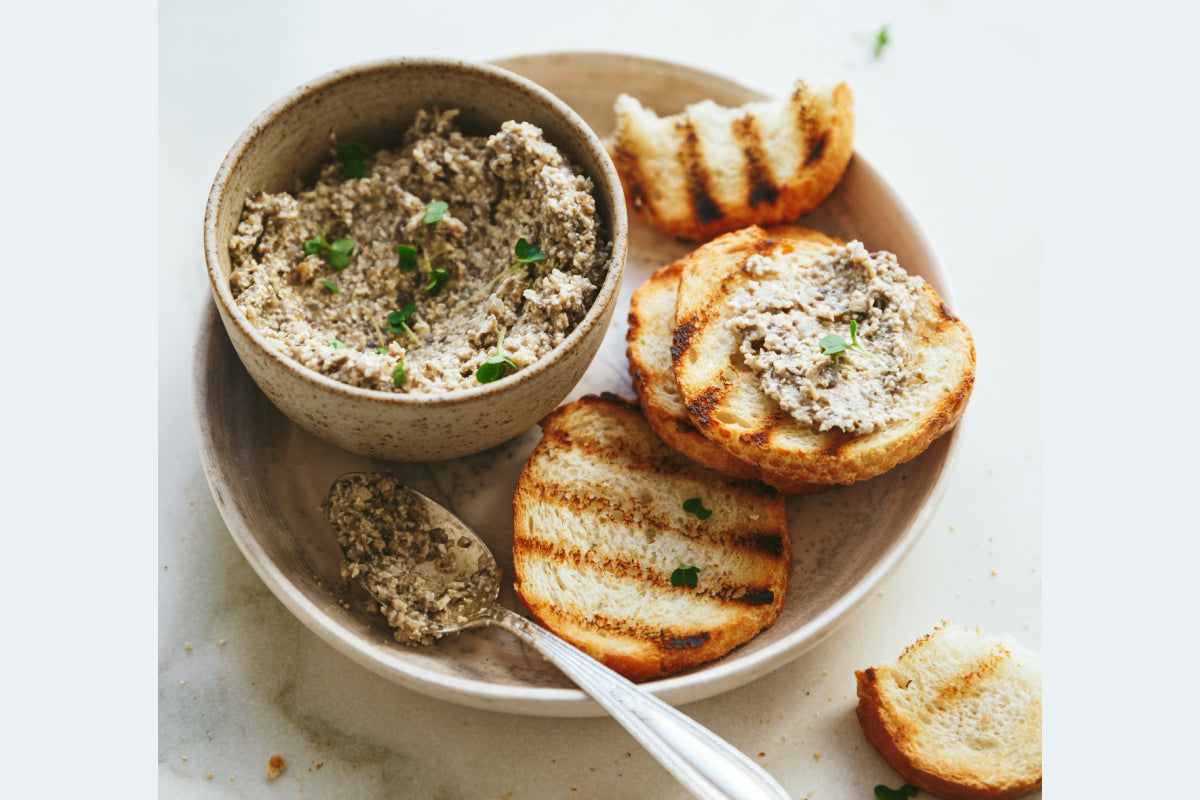 Tofu Mushroom paté is delicious and has the additional benefit of not evoking a horrific image of a force-fed goose. So here’s a nice, cruelty-free paté for you to enjoy. It’s a simple vegan recipe that we’ve developed to what we now consider as pretty close to perfection. Tangy mushrooms team up with creamy, whizzed up tofu to give it some bite and a nutritional boost. You can give it additional zestiness by adding a squeeze of lemon juice at the end but that bit is up to you.